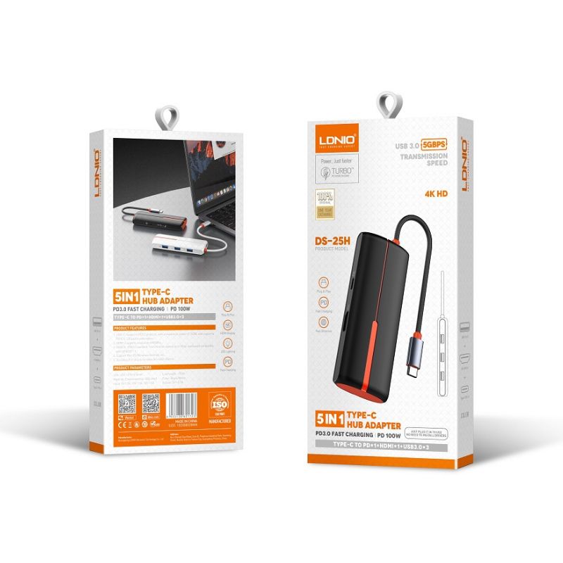 Bộ Chuyển Đổi TypeC LDNIO DS25H – 3 USB 3.0, HDMI 4K, PD Sạc Nhanh