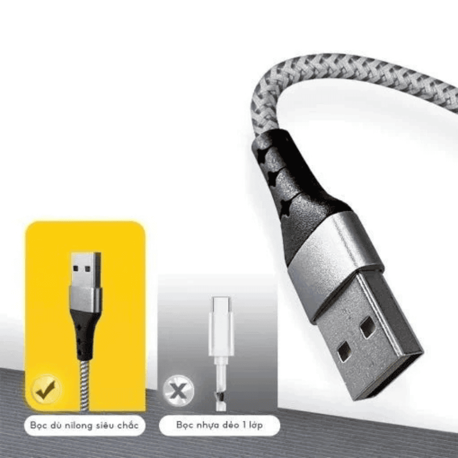 Cáp có dòng điện tối đa 2.4A, hỗ trợ sạc nhanh (Tuỳ vào thiết bị).