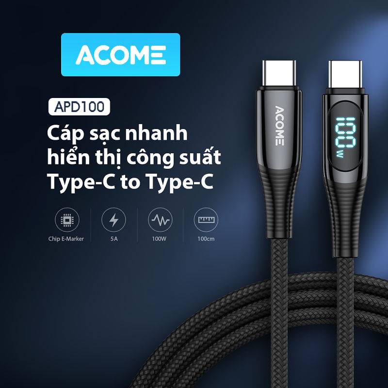 Giới thiệu Cáp sạc nhanh Acome APD100 Type-C to Type-C