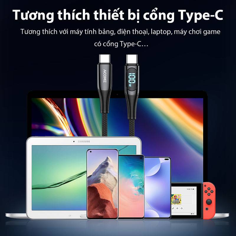 Cáp sạc nhanh Acome APD100 Type-C to Type-C Hàng chính hãng