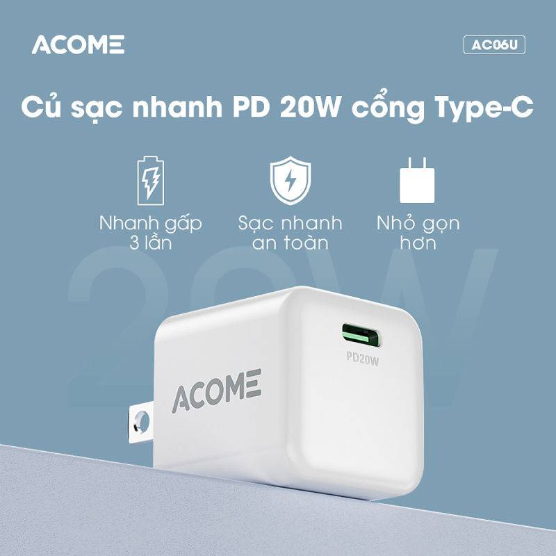 Cốc sạc ACOME AC06U White PD 20W Type C