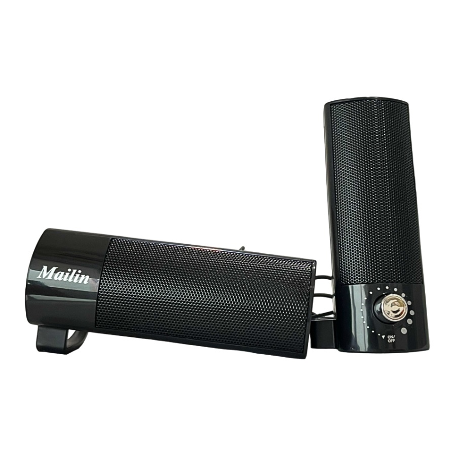 Loa Mailin kết nối với thiết bị qua jack 3.5mm và lấy nguồn điện từ cổng USB 5V – bạn chỉ cần cắm vào laptop hoặc PC là có thể sử dụng ngay, không cần cài đặt hay phần mềm hỗ trợ. Loa còn tích hợp nút điều chỉnh âm lượng tiện lợi ở mặt trước.