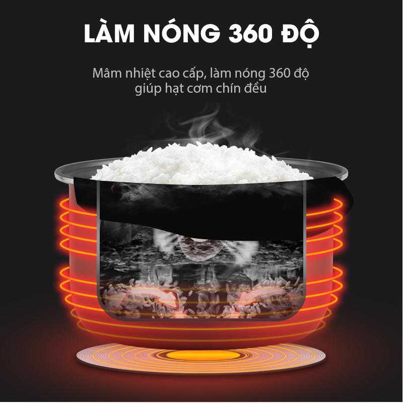 – Mâm nhiệt cao cấp, làm nóng đều 360 độ, giúp hạt cơm chín đều